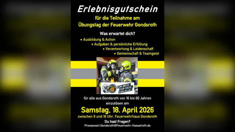 Was sonst bei Anbietern für Erlebnisgeschenke für teures Geld gekauft werden muss, gibt es bei der Feuerwehr Gondsroth kostenlos: einen Gutschein für ein besonderes…