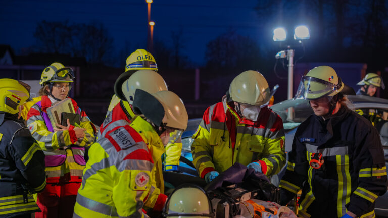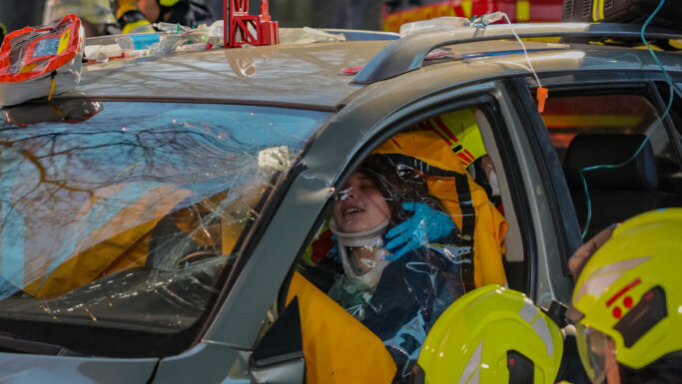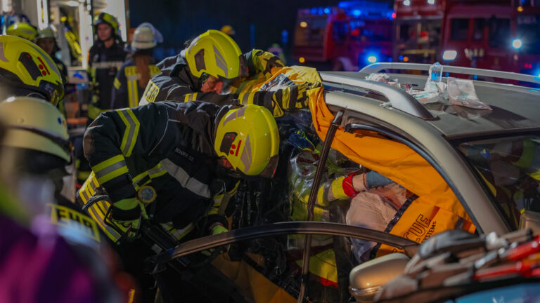 Nach wenigen Minuten fanden sie zwei ineinander gefahrene PKWs mit 3 eingeklemmten und weiteren 2 verletzten Personen vor.