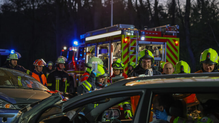 Die Schwerverletzen wurden in enger Abstimmung mit dem Rettungsdienst mittels hydraulischen Rettungsgeräten aus den Fahrzeugen befreit, während sich andere Einsatzkräfte um die Brandbekämpfung kümmerten.