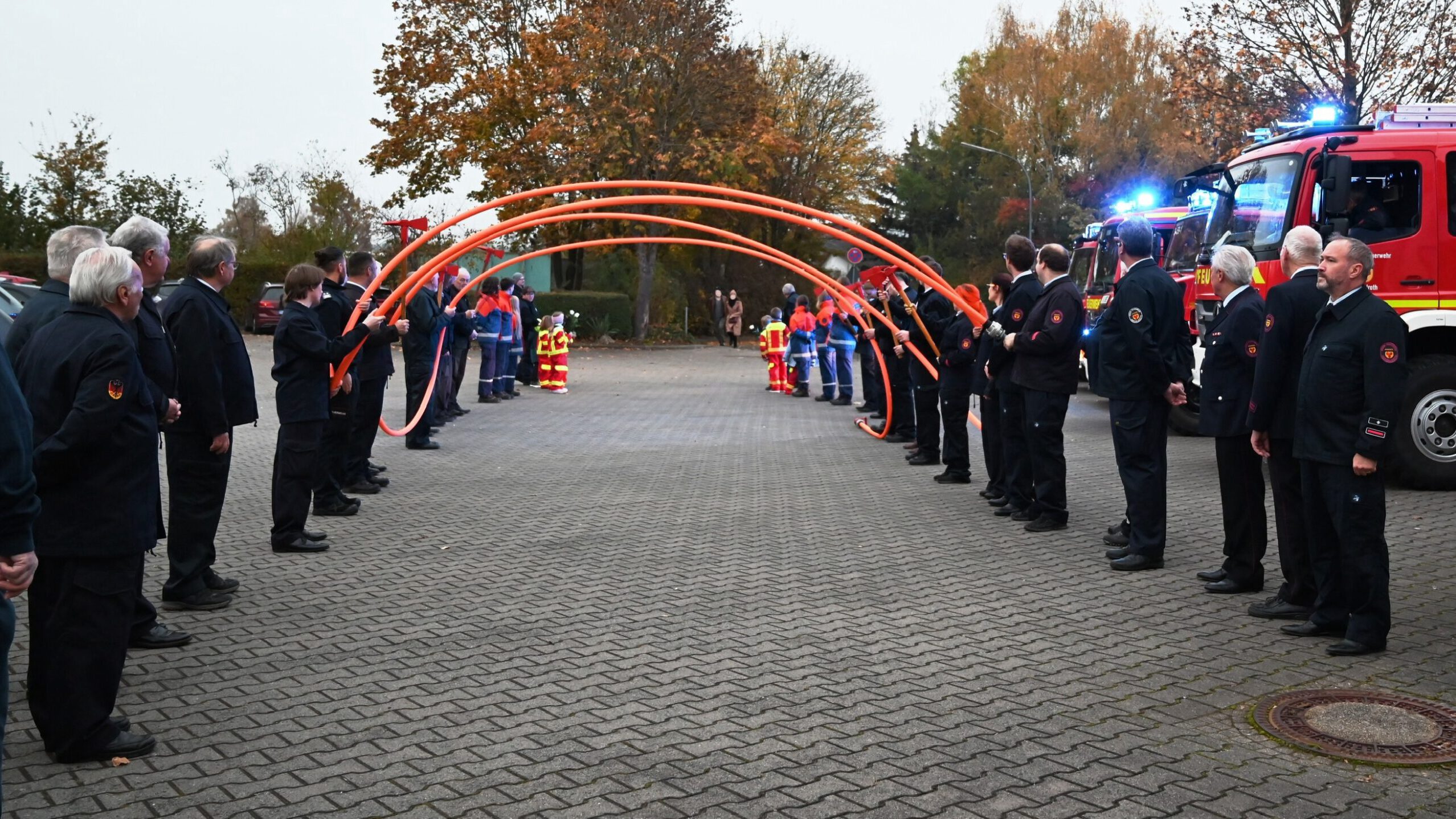 Als Dank und Anerkennung für sein Lebenswerk war dieses Ehrenspalier gedacht. Die Feuerwehren von Hasselroth wünschen Gunther Born weiterhin viel Kraft und Gesundheit, sodass er noch zahlreiche Stunden im Kreise der Feuerwehren verbringen kann.