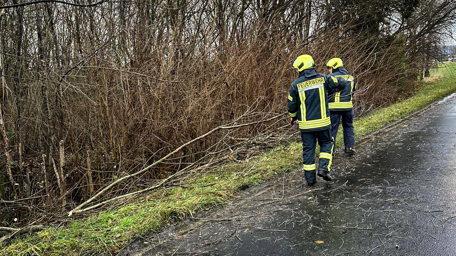 Mehrere Bäume hingen über der Kreisstraße zwischen Niedermittlau und Meerholz und gefährdeten den Verkehr. Die Feuerwehr sicherte die Einsatzstelle ab und befreite die Straße mittels Kettensäge von der Gefahr. Die Kreisstraße war während der Einsatzmaßnahmen halbseitig gesperrt.