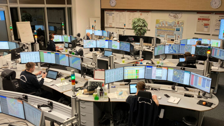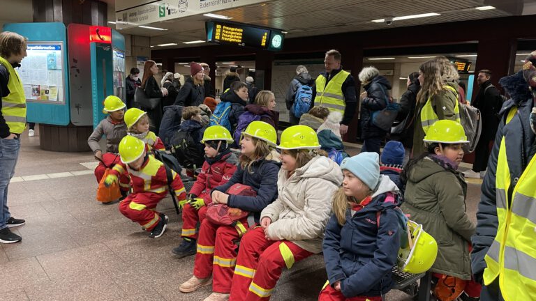 Nach der Anstrengung konnte sich die ganze Gruppe am mitgebrachten Frühstück stärken, bevor die Tour weiterging. Durch die große Übungshalle, weiter zur eigenen U-Bahnstation auf dem Gelände ging es abschließend noch in kleinen Gruppen in die Zentrale Leitstelle, dem Arbeitsplatz von Florian. Nachdem zum Ende des letzten Jahres zuhause etwas über den Notruf gelernt wurde, konnten die Kinder das Ganze jetzt auch live erleben. Anschaulich wurde die Technik und Arbeitsweise erklärt und auch der ein oder andere Einsatzbearbeiter konnte mit Fragen gelöchert werden. Auch hier gab es große Augen, sitzt doch jeder Kollege dort an einem der 11 Arbeitsplätze vor 5 großen Bildschirmen.