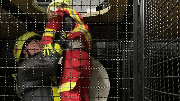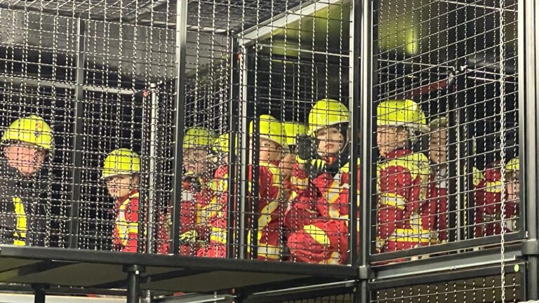 Hier hatten die Flöhe die Gelegenheit das Feuerwehr- und Rettungstrainingscenter (FRTC), die „hauseigene“ Feuerwehrschule zu besichtigen. Das Highlight aber war die Atemschutzübungsstrecke, eine Art mehrstöckiger Gitterkäfig, die einmal im Jahr von jedem Atemschutzgeräteträger bewältigt werden muss. Die Gesamtlänge beträgt über 100m. Sie ist durch Engstellen, Hindernissen, Kriechröhren und Sackgassen im Hellen noch gut zu bewältigen, bei fehlender Beleuchtung erhöht sich der Schwierigkeitsgrad dann aber doch sehr stark. Dies konnte die Kinder dann aber auch nicht davon abhalten, die Strecke in kleinen Gruppen, bei ausgeschalteter Beleuchtung und nur unter Zuhilfenahme einer kleinen Handlampe zu meistern. Hier zeigte sich der Teamgeist der Truppe. Kein Feuerfloh wurde von den anderen zurückgelassen und schwierige Stellen wurden gemeinsam gemeistert. Natürlich mussten die Betreuer Angie und Flo auch mit durch die Strecke kriechen.